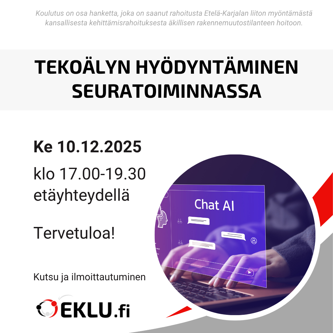 Koulutuksessa esitellään tekoälyn keskeiset mahdollisuudet seuratoiminnan kehittämisessä käytännönläheisin esimerkein. Tavoitteena on avata tekoälyn perusteita ja havainnollistaa sen käyttöä…