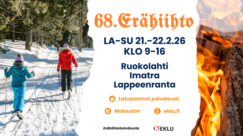 Etsimme toimijoita mukaan käytännön toiminnan toteuttamiseen koulujen ja päiväkotien avuksi Etelä-Karjalan Eräviikolle 16.-20.2.26 Toimintaa voi tarjota tietysti muunakin ajankohta, niin useampi…