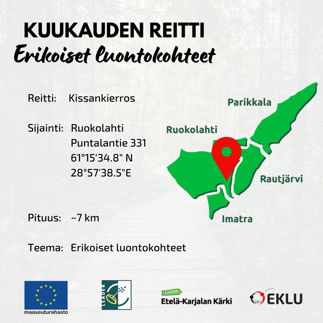 Noin 7 kilometrin pituiseen rengasreittiin mahtuu vaihtelevia metsä- ja peltomaisemia, pitkospuita, rantamaisemaa, Vaaranmäen laavupaikka sekä kivikirkko lammen rannalla. Nimensä reitti on saanut reitin varrelle osuvasta Kissamäestä, jonka läpi polku kulkee. Kissankierros on Puntalan kyläyhdistyksen aikaansaannos.