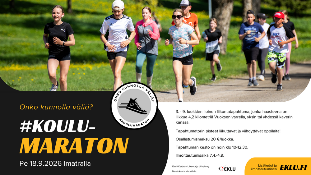 Vuonna 2026 järjestämme maakunnallisen Koulumaraton tapahtuman