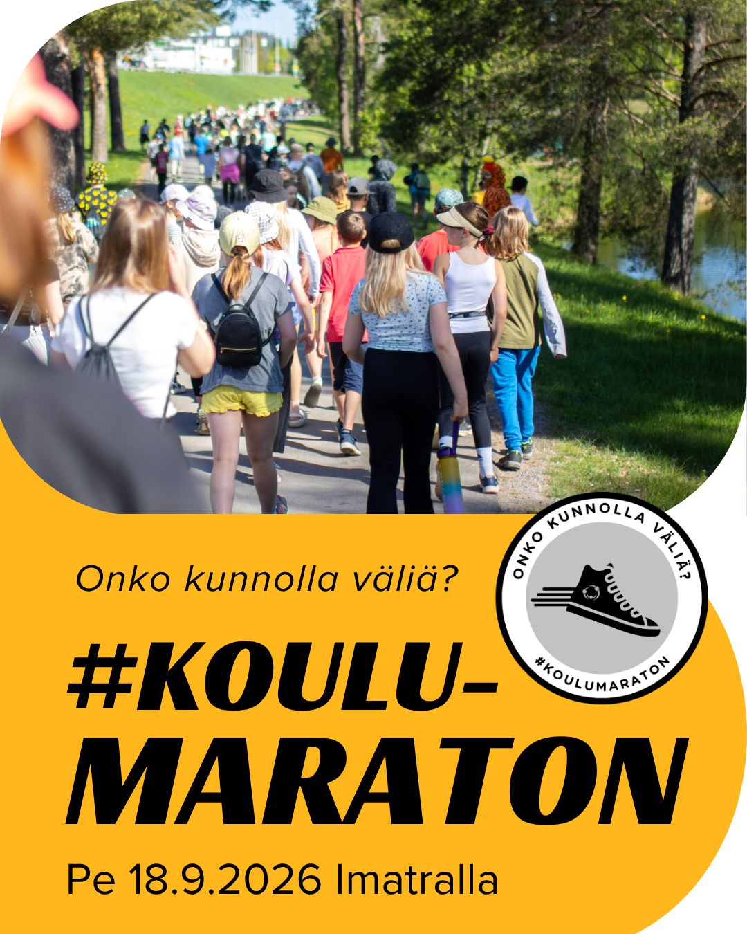 #Koulumaraton-tapahtuma Imatralla 18.9.2026 klo 10-12.30.