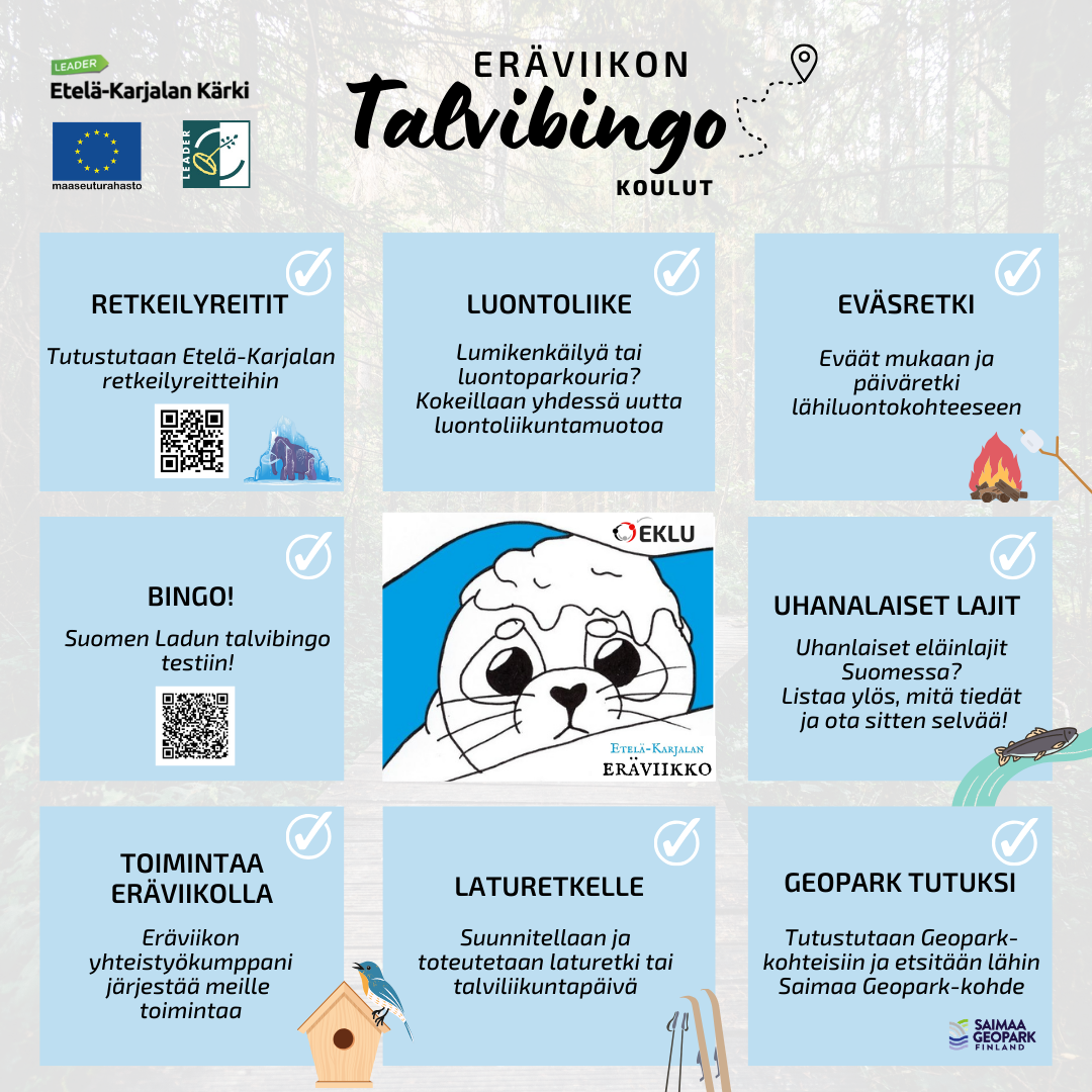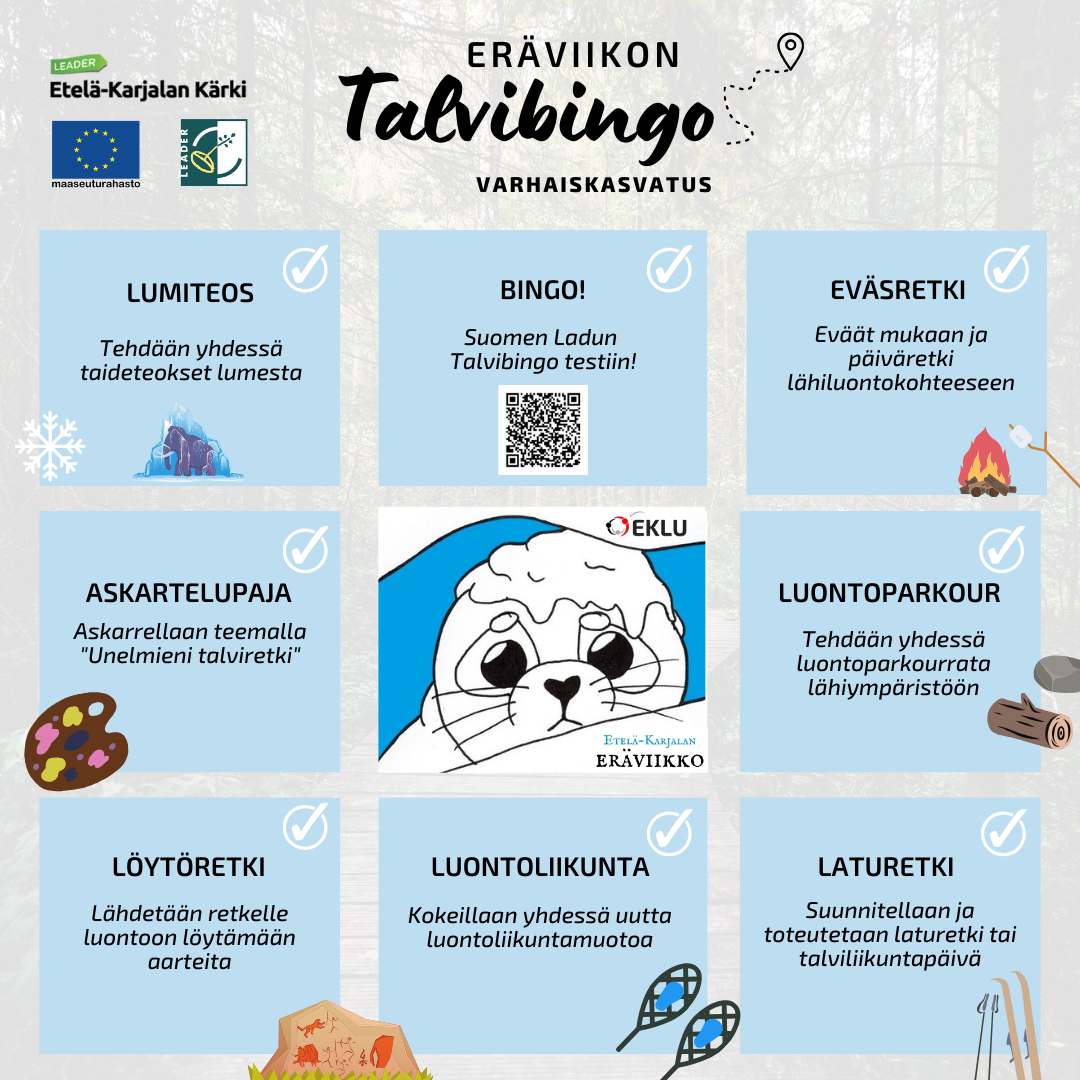 Tulostakaa kohderyhmänne (varhaiskasvatus / koulut) bingoruudukko käyttöönne