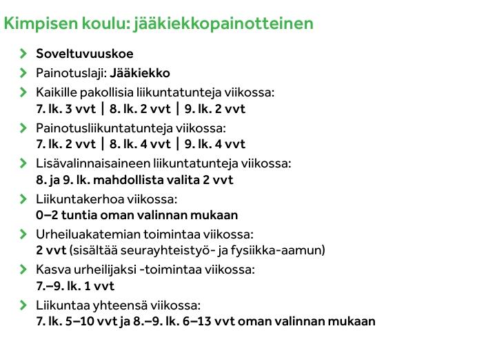 Kimpisen koulu: jääkiekkopainotteinen ja liikuntapainotteinen opetus
